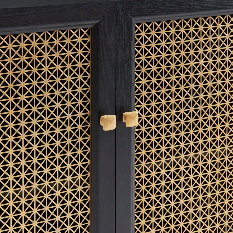 The Aveline Sideboard combines contemporary form with timeless texture, bringing warmth and character to any room. Featuring cane-webbed cabinet doors, this piece introduces an airy, organic element that complements both coastal and French country styles. Three cabinet doors open to reveal spacious interior shelving, perfect for dishes, glassware, or everyday essentials. Its versatile design allows it to serve as a dining room sideboard, living room TV stand, or bedroom bookcase with ease. Finished with sleek metal feet in a golden tone, the Aveline balances functionality with a refined, stylish edge.