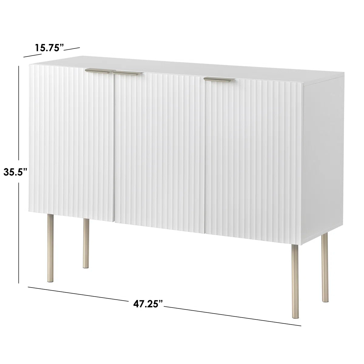 Sleek and stylish, the Cavallo Sideboard brings a touch of retro sophistication to your dining or living room. Its channel-textured cabinet doors are paired with gold-tone or black-tone hardware, depending on the finish, for a refined yet modern look. Available in White, Black, Green, Taupe, or Charcoal, it easily adapts to different décor styles. Inside, adjustable shelves provide versatile storage for table linens, dishware, or vinyl records, keeping your essentials neatly organized. Finished in satin for a smooth, elegant feel, the Cavallo is as functional as it is fashionable.