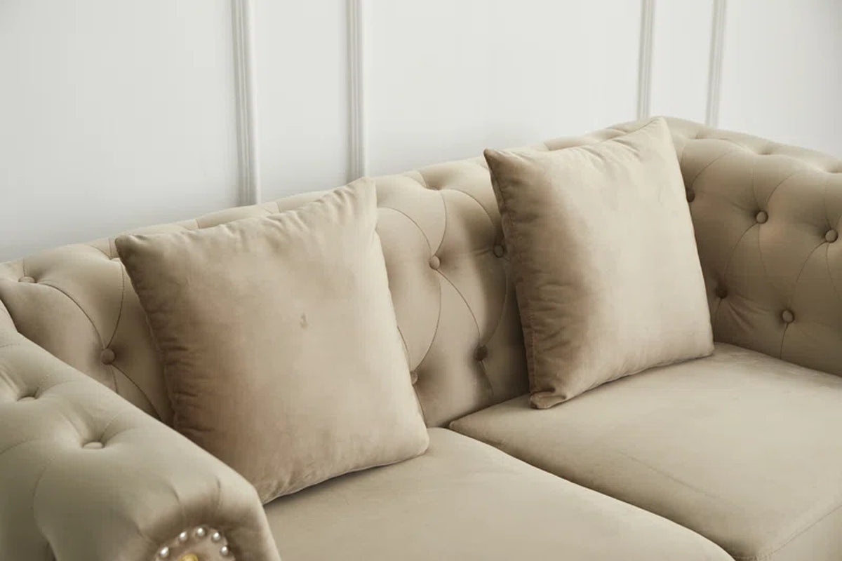 The Marcellus Velvet Loveseat brings timeless Chesterfield elegance into your home with a design that’s both stylish and comfortable. Featuring deep button tufting, plush scrolled arms, and a padded back with diamond detailing, this loveseat is the perfect mix of classic charm and modern appeal. Fitted with removable seat cushions for added convenience and upholstered in luxurious velvet, it offers a soft yet durable finish. Easy to maintain and effortlessly versatile, the Marcellus makes a sophisticated addition to living rooms, offices, or cozy reading spaces.