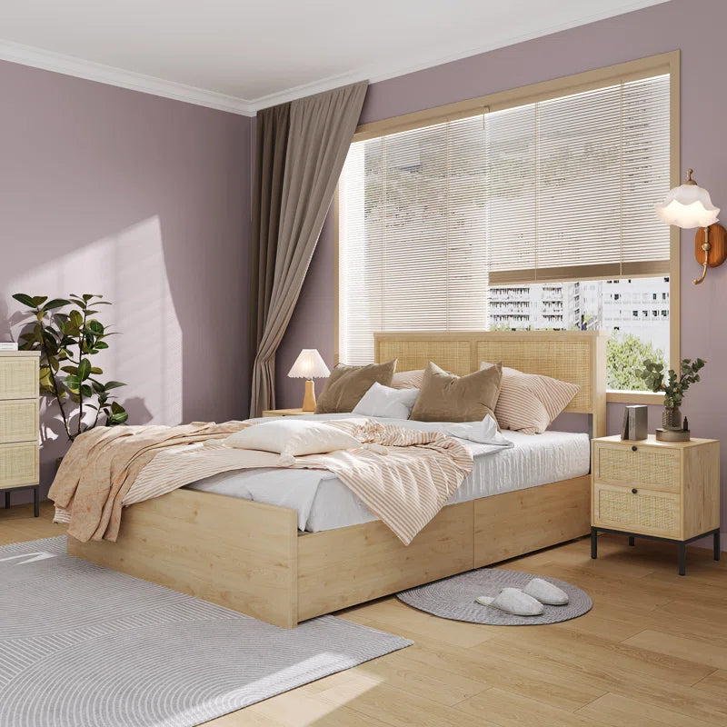 Bring boho charm into your home with this set of two rattan nightstands. Each piece features handmade woven drawer fronts paired with a sleek wood frame for a natural, breezy aesthetic. Two spacious drawers offer storage for books, magazines, and bedside essentials, while the compact design makes them perfect for small spaces. Their versatile look blends coastal, bohemian, and modern styles, adding warmth to bedrooms, living rooms, or offices. A stylish and functional set that enhances any room.