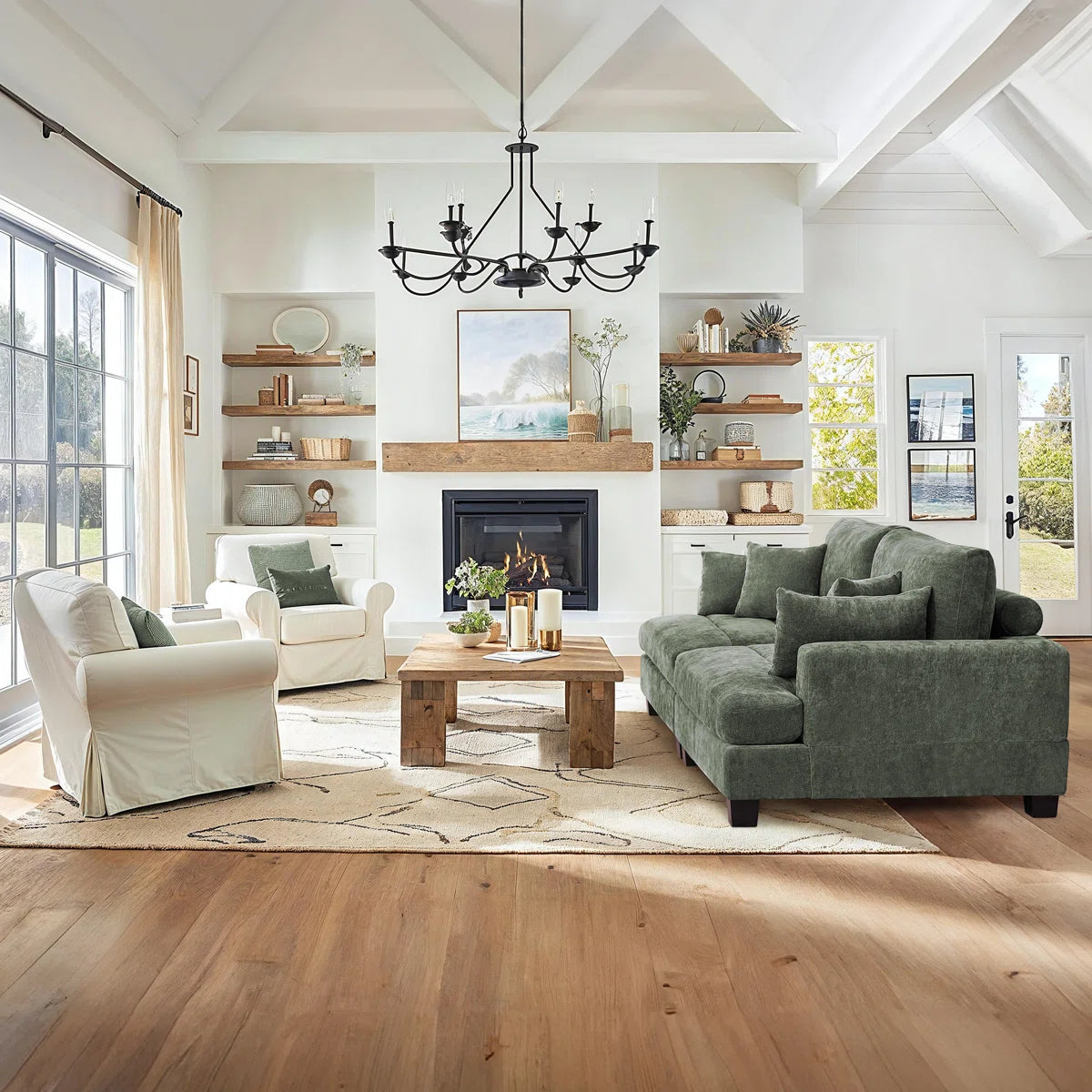 This modern 3-seater sofa blends timeless design with everyday comfort. Built on a durable wood frame, it rests on sturdy block feet for lasting support. Foam-filled cushions invite relaxation, while wide square arms add structure and style. An adjustable headrest allows personalized comfort, making lounging, reading, or TV time more enjoyable. Four matching toss pillows complete the look, adding extra coziness and charm to your living space. A perfect centerpiece for both casual and refined interiors.