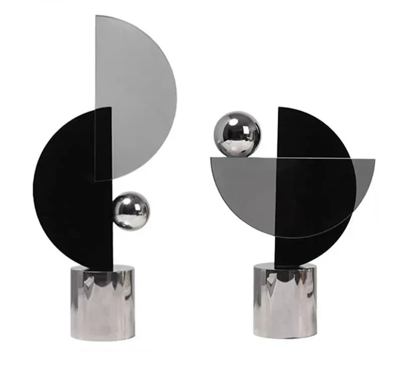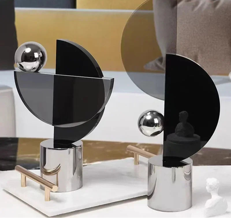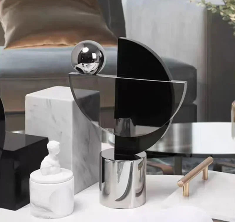The Veyron Sculpture blends modern minimalism with futuristic elegance. Featuring sleek black crystal forms intersected by reflective metallic spheres, it creates a dynamic visual statement that doubles as both art and décor.